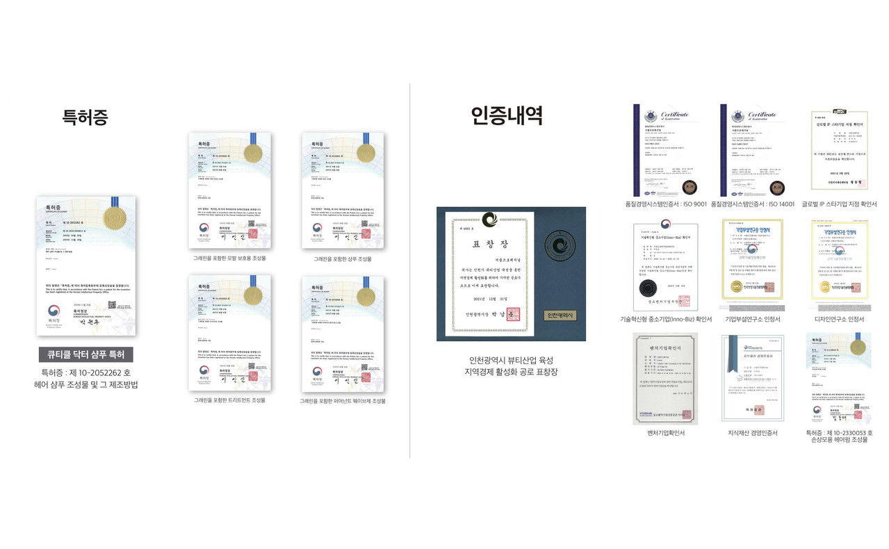 특허 및 수상내역·시험성적서